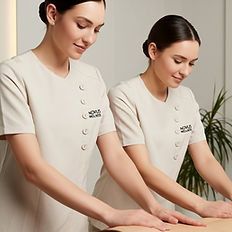 Because two therapists work at the same time, your body receives double the attention and double the sensory input. This overwhelms the usual tension‑holding patterns and helps your muscles relax more quickly. The balanced, mirrored movements also create a unique flow that feels seamless and deeply soothing. It’s a premium treatment designed for clients who want a truly elevated experience.